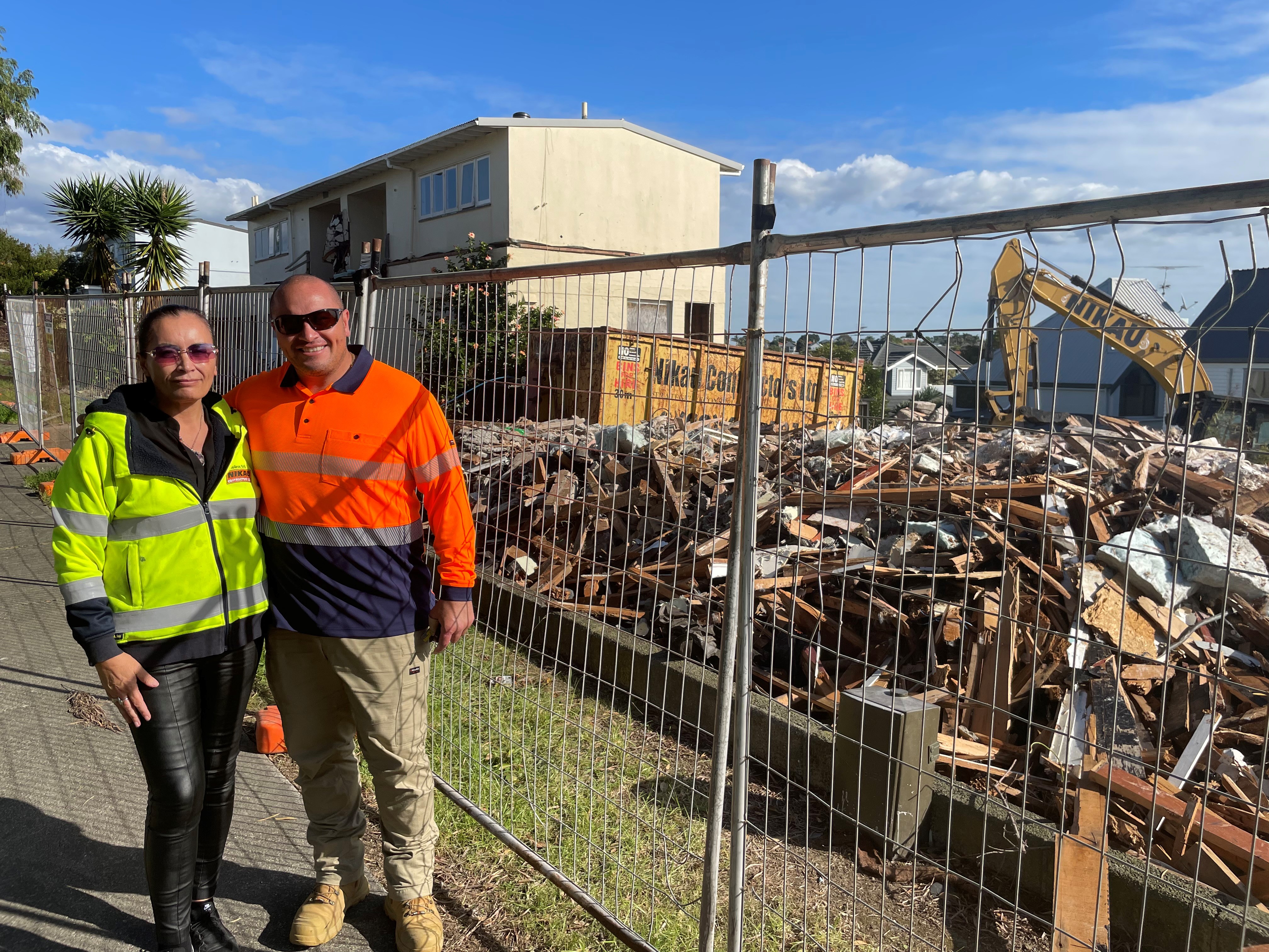 Demolition works on old homes acquired from Kāinga Ora along Kupe Street between Hawaiki and Takitimu/Te Arawa Street has just been completed by one of our whānau owned pakihi. We had a kōrero with JP Stil and his sister Helina Stil from Nikau Contractors to find out more about their pakihi and what it means to be leading this mahi.