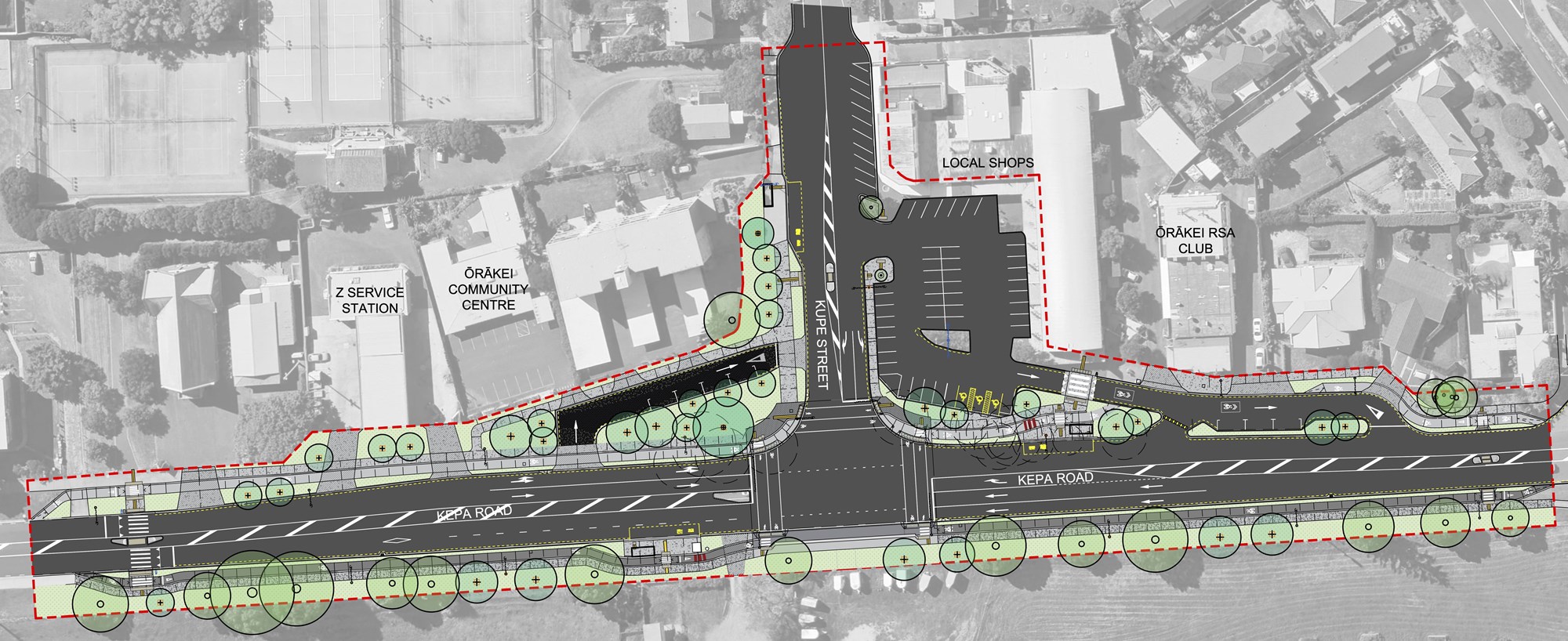 Kepa Road is a busy route, linking the city centre with Ōrākei and the eastern suburbs. Its intersection with Kupe Street is a gateway into a thriving local neighbourhood. Around Kupe Street intersection is a hub of residential properties, businesses, community centres, sports clubs, Plunket, a school, and an early learning centre.