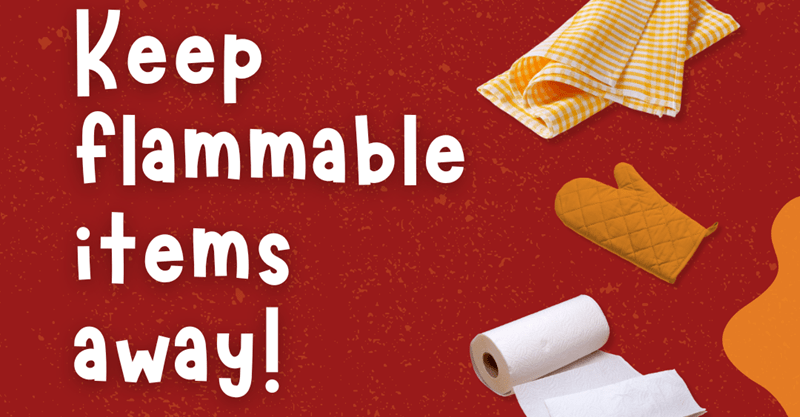 Small items like tea towels and oven mitts can cause big problems if they catch fire. Keep them safe and away from the stove.